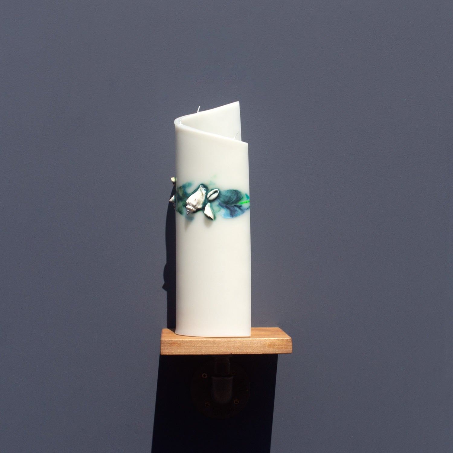 Curve candles are three wicked curved flat candles. Light the wicks at the top to experience a burn as seen here. After about 9 hours burn, what you are left with is a truly abstract feature.